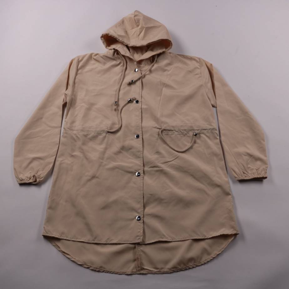 Лёгкая ветровка с капюшоном на кнопках, без утеплителя, из гладкой ткани. Подойдёт для прогулок и поездок в прохладную или ветреную погоду, удобна за счёт свободного кроя и карманов.