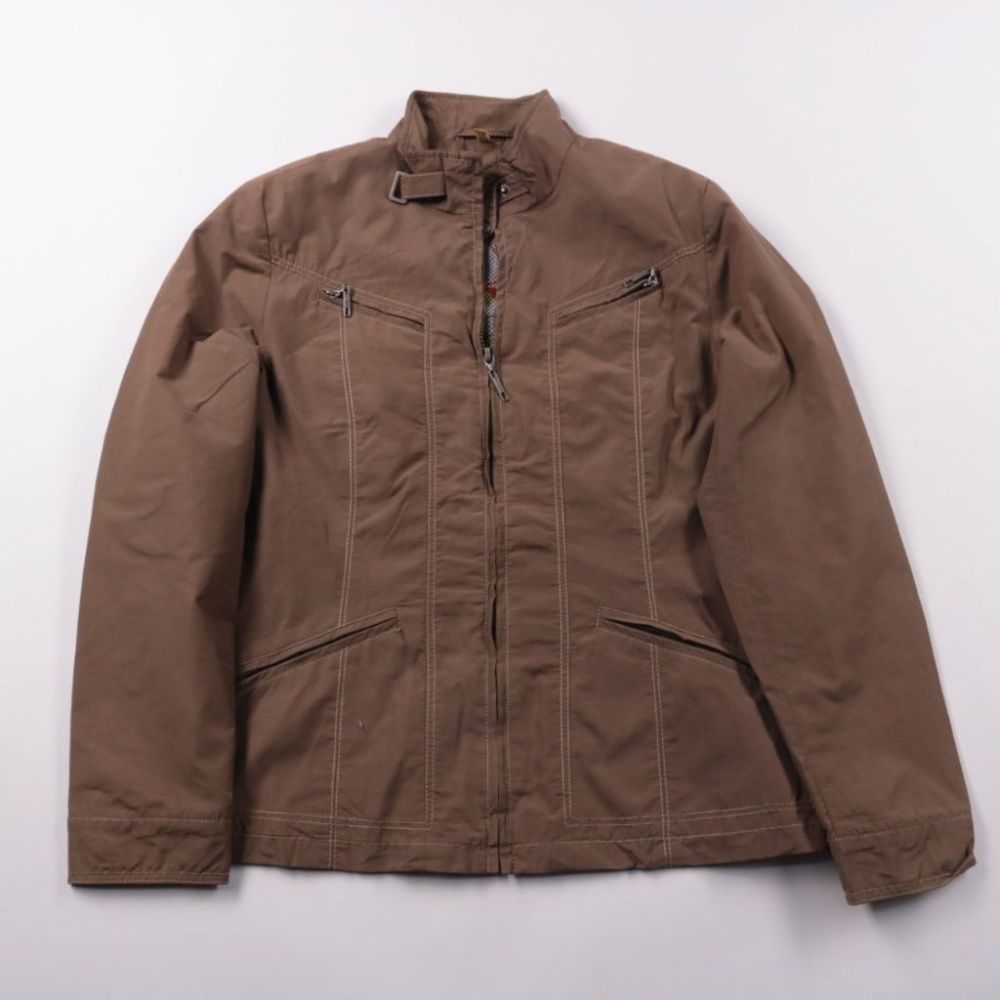Женская лёгкая куртка в коричневом цвете со стойкой и застёжкой на молнию, есть нагрудные карманы на молниях. Подойдёт для повседневной носки в межсезонье и прохладные вечера. Практична за счёт немаркого цвета и удобных карманов для мелочей.