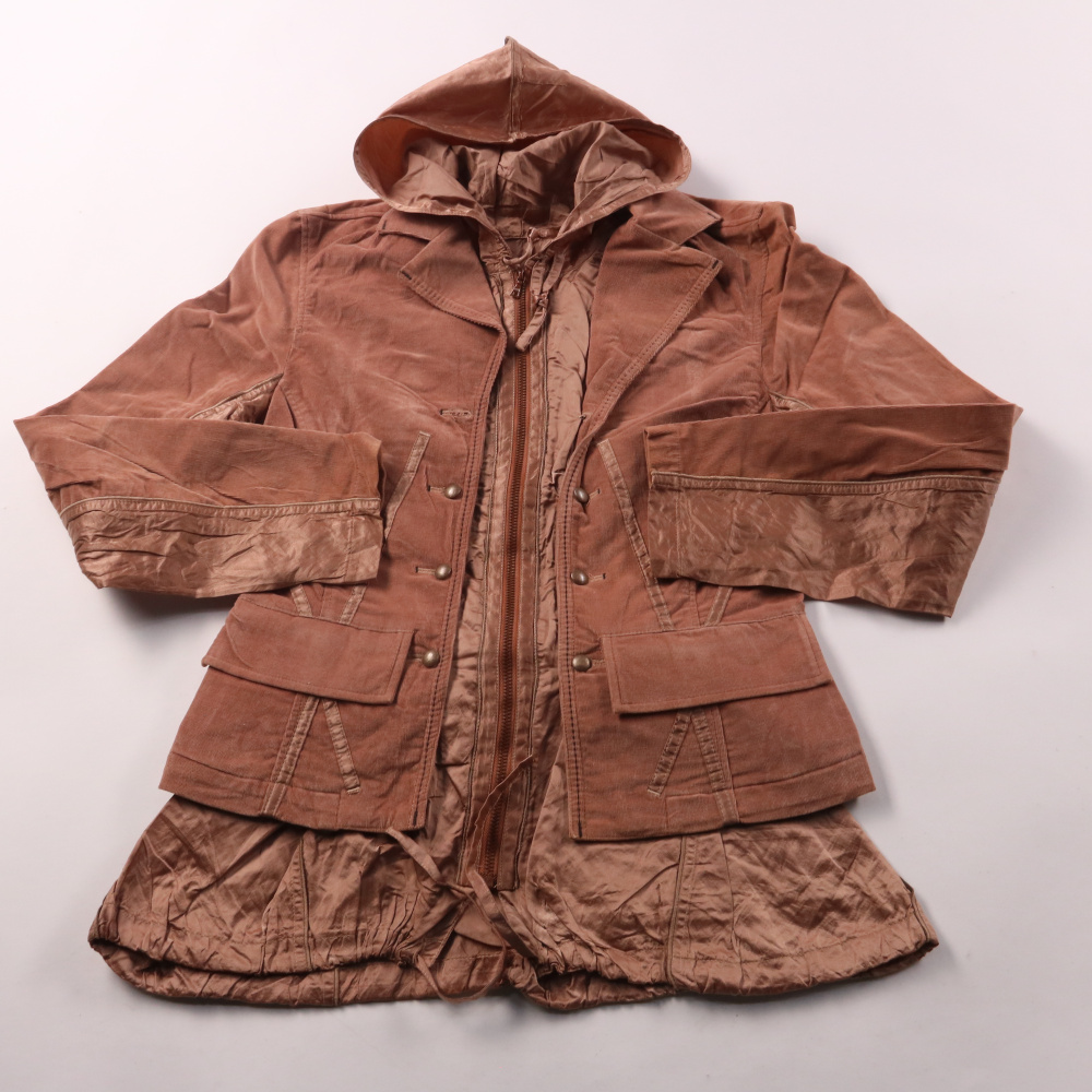 Женская демисезонная куртка с капюшоном и накладными карманами, без указанного бренда. Подойдёт для повседневной носки в прохладную погоду и в поездки. Практичный плюс — застёжка на молнию и удобные карманы для мелочей.