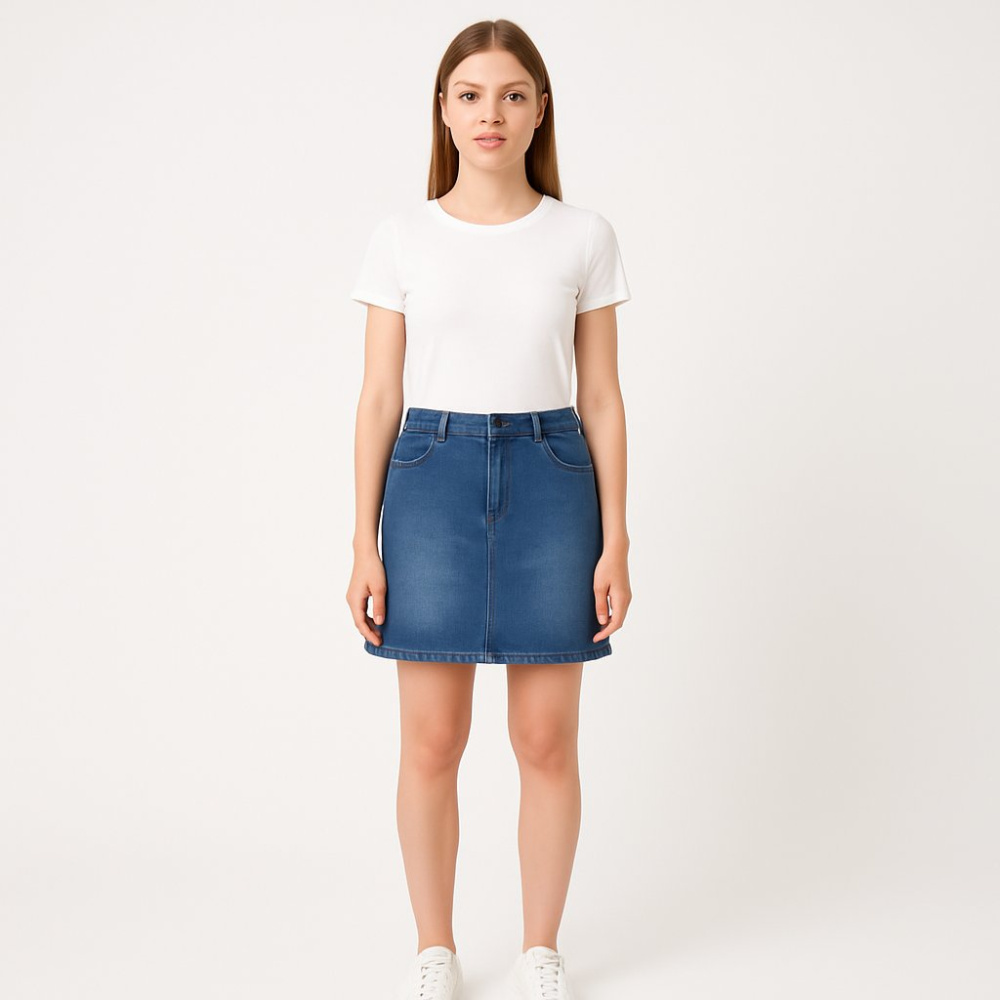 Джинсовая юбка In Extenso синего цвета, прямого кроя и длины мини, с карманами и застёжкой на молнию/пуговицу. Подойдёт для повседневных образов летом и в демисезон с колготками. Плотный деним хорошо держит форму и не требует сложного ухода.