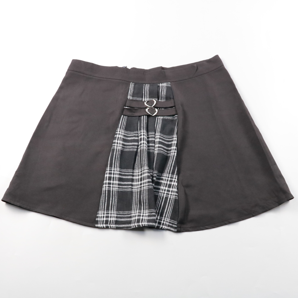 Юбка Romwe чёрного цвета с декоративной вставкой в клетку спереди и пряжками-сердечками. Подойдёт для повседневных образов и в стиле casual/office, хорошо сочетается с однотонными топами и рубашками. Практичный плюс — ткань с эластаном тянется и комфор...