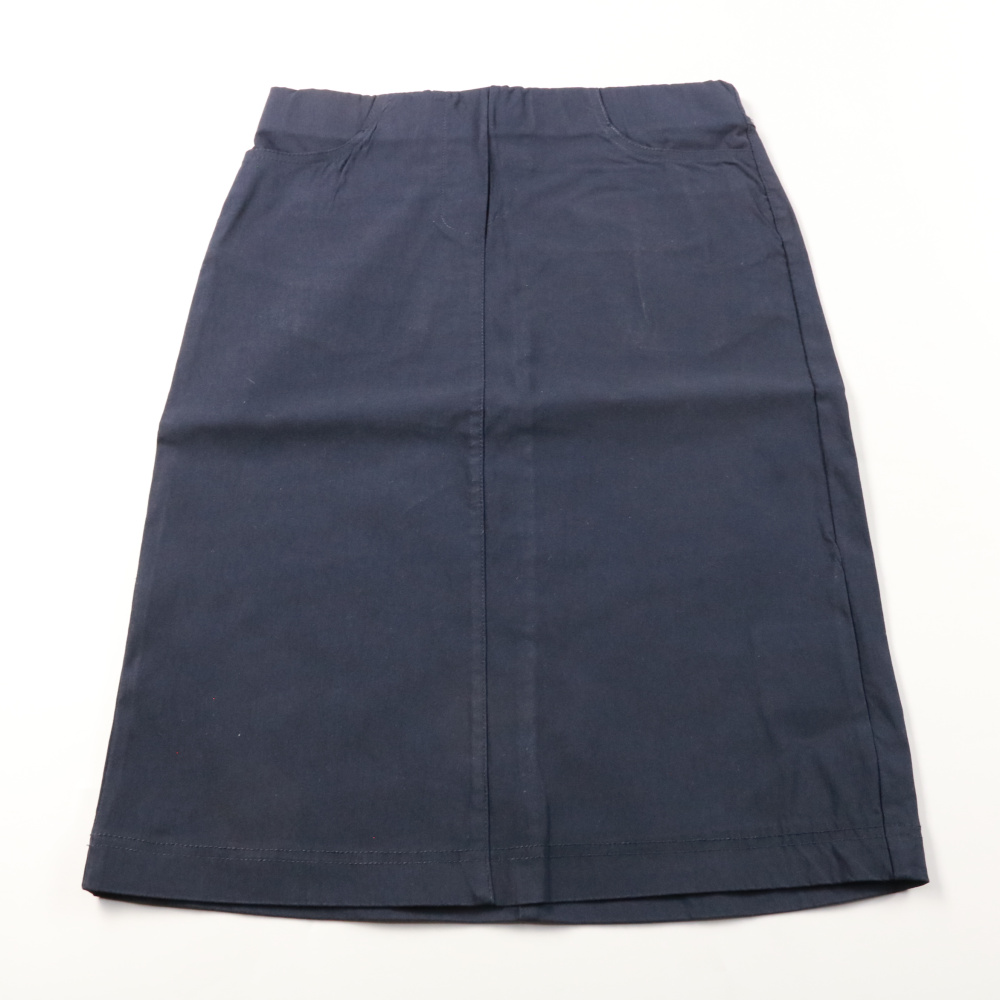 Юбка Laura di Sarpi тёмно-синего цвета, прямого кроя (карандаш) с высокой посадкой и шлицей сзади. Подойдёт для офиса и повседневных образов, легко сочетается с рубашками и джемперами. Ткань с добавлением эластана комфортно тянется и меньше мннётся.