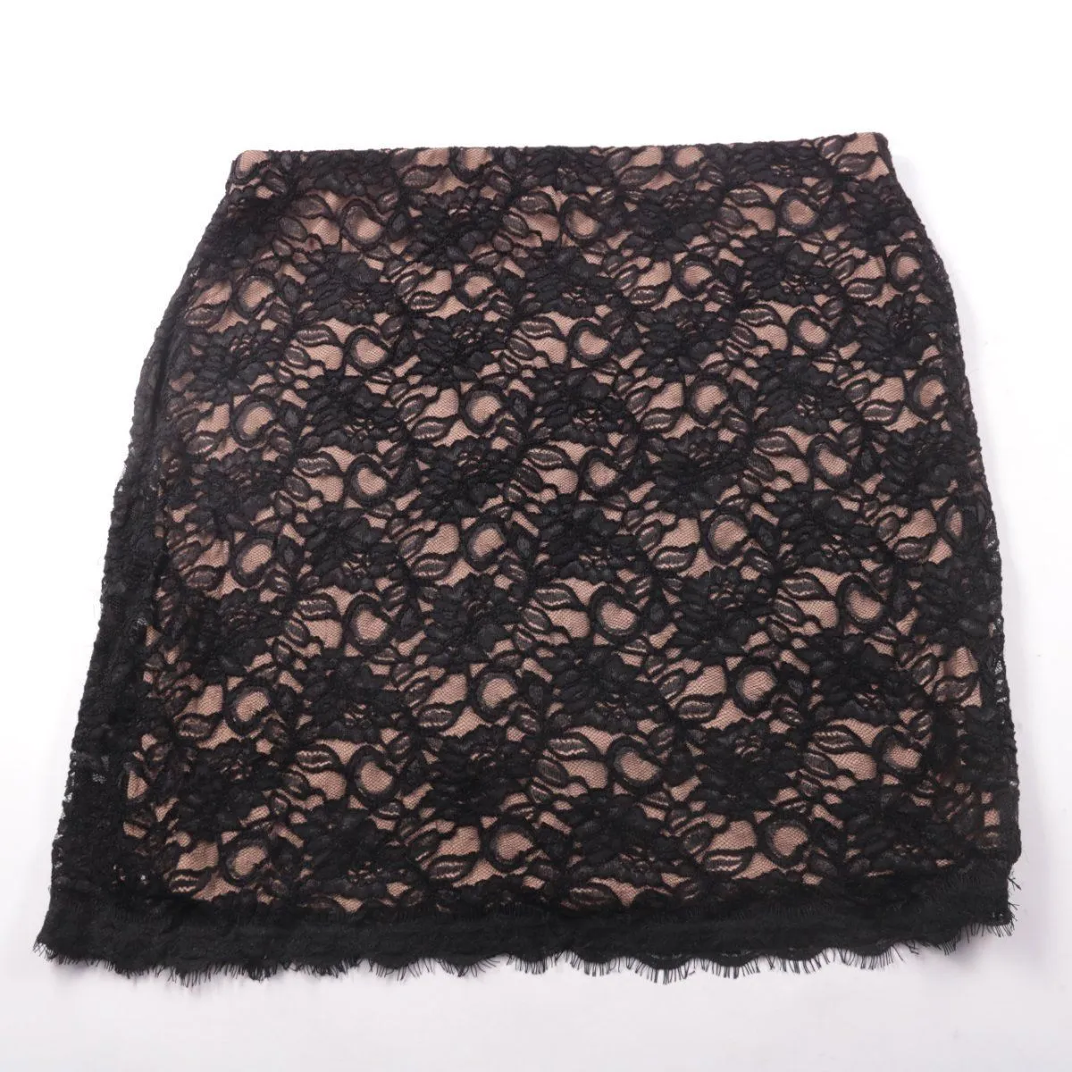 Юбка MODA at George из чёрного кружева на телесной подкладке. Подойдёт для вечерних выходов и образов в стиле casual с футболкой и кедами. Подкладка делает модель комфортной и не просвечивающей.
