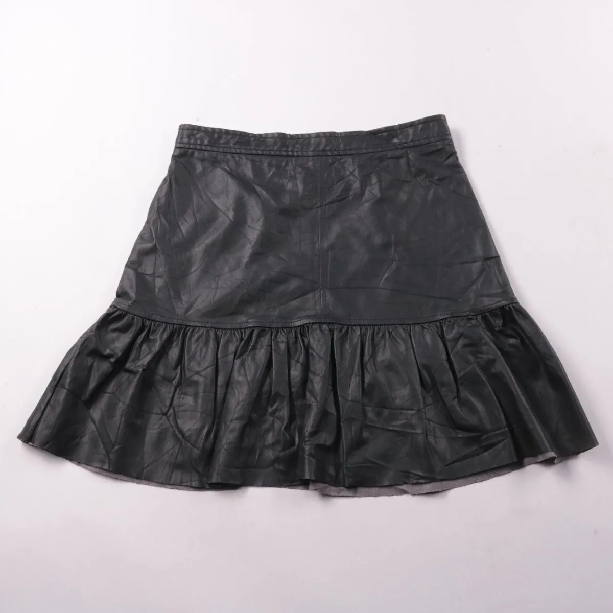 Юбка H&M из эко-кожи чёрного цвета с воланом по низу. Подойдёт для повседневных образов и выхода, хорошо сочетается с блузами и свитерами. Материал практичен в уходе и держит форму.